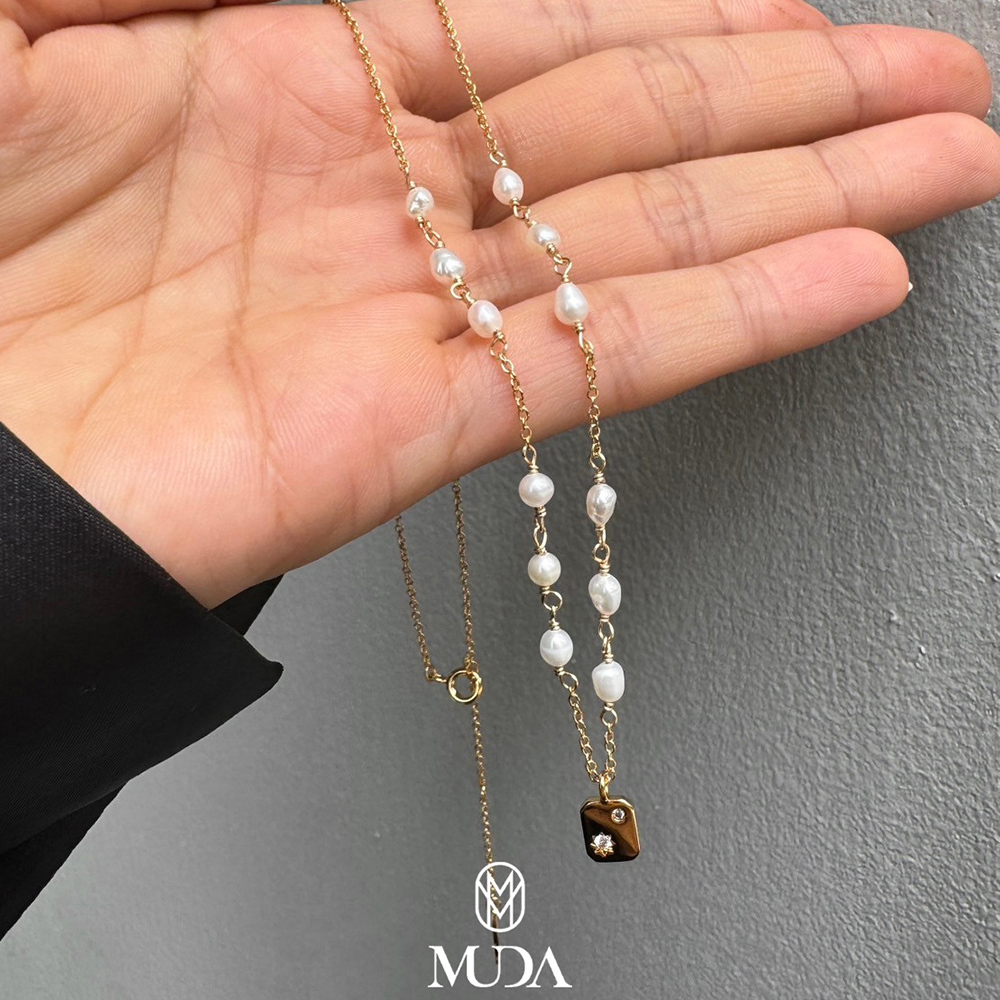 材質 | 高密度銅 / 鋯石 / 鍍18K金 / 天然真珍珠