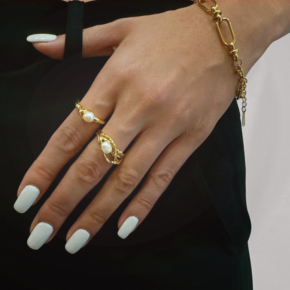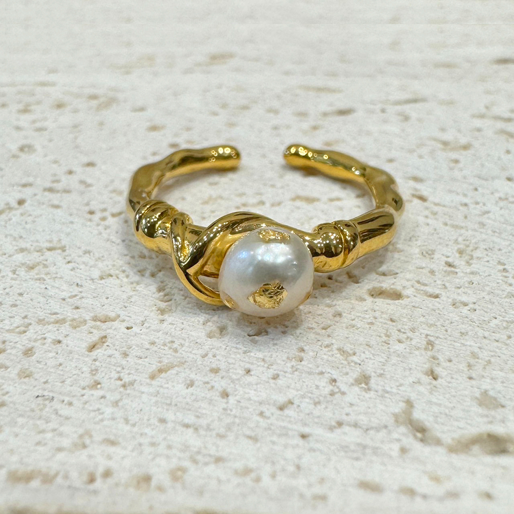 材質 | 銅鍍18K金 / 天然珍珠 / 金箔