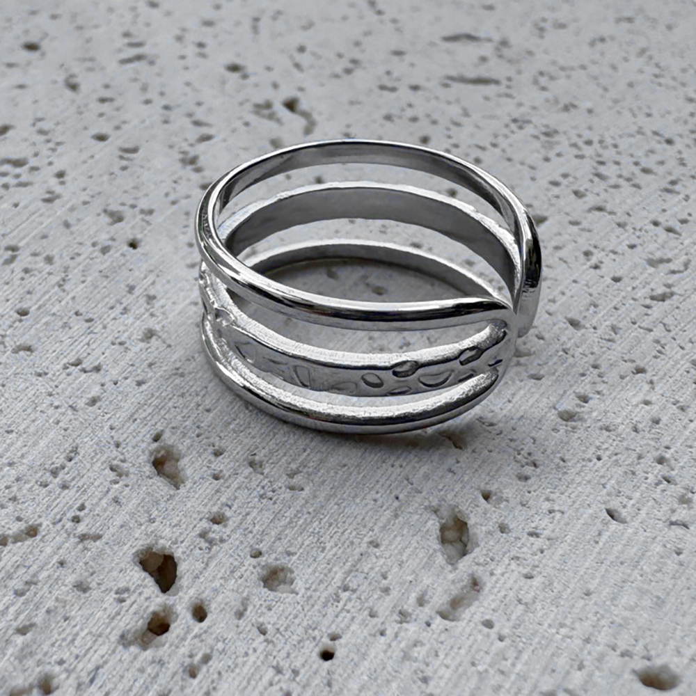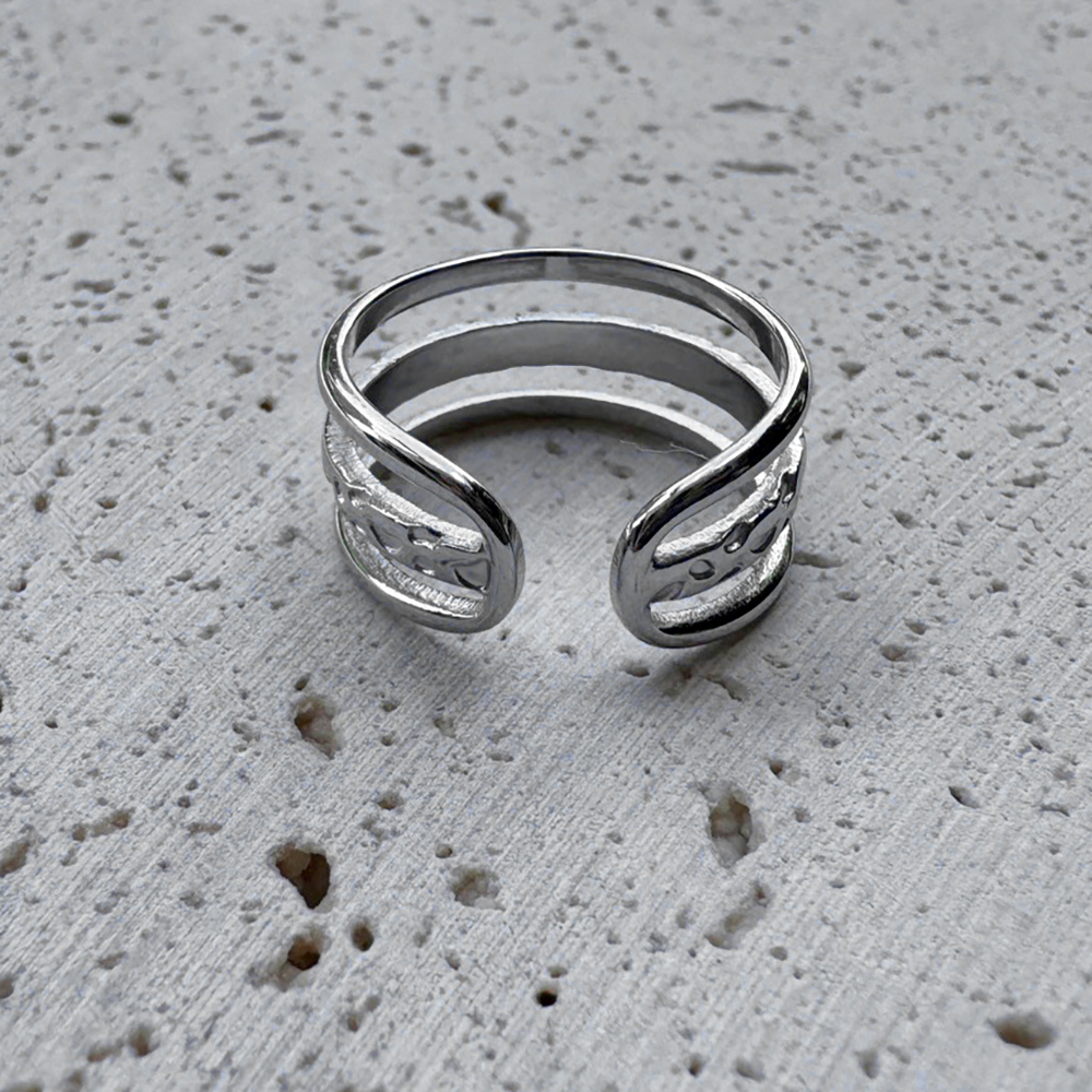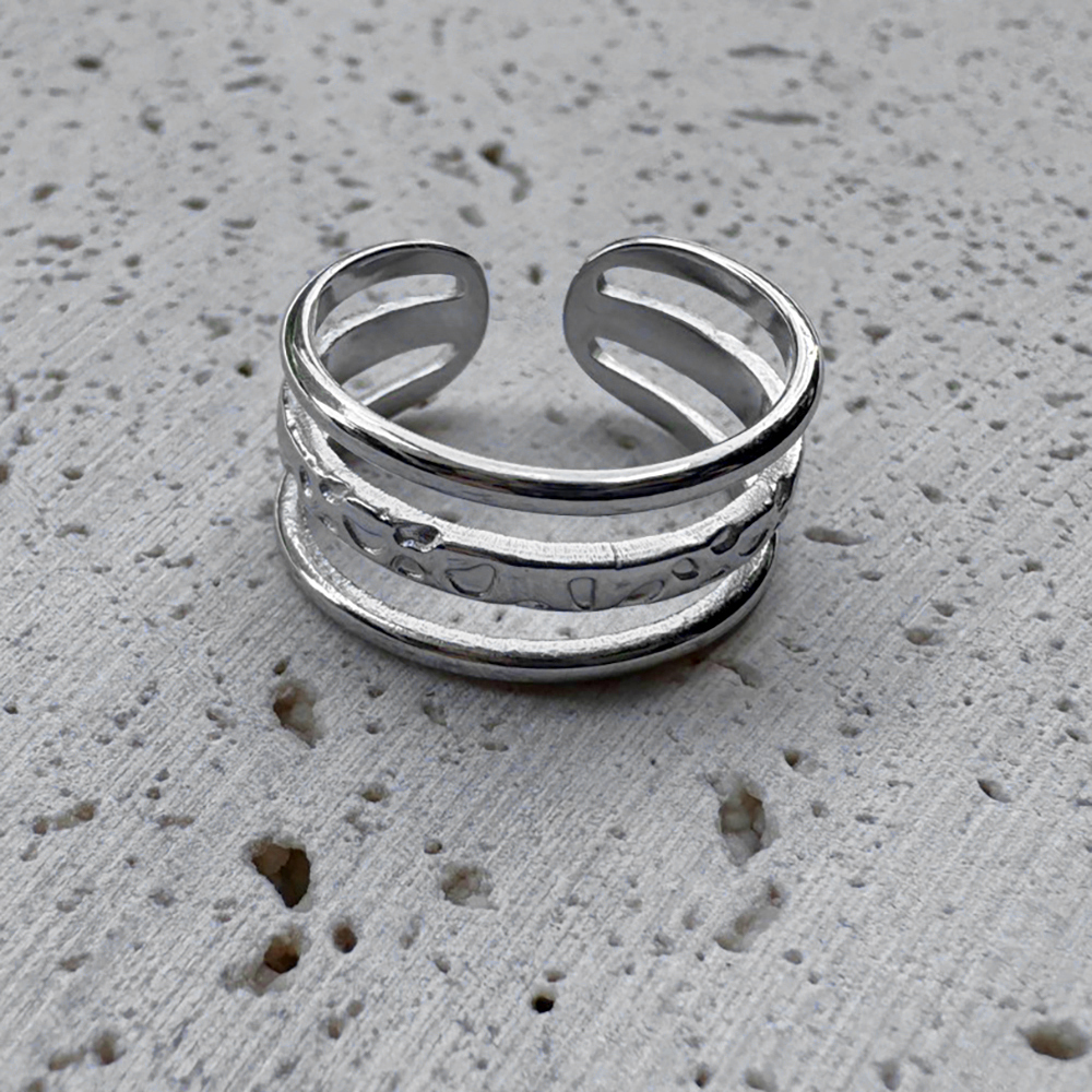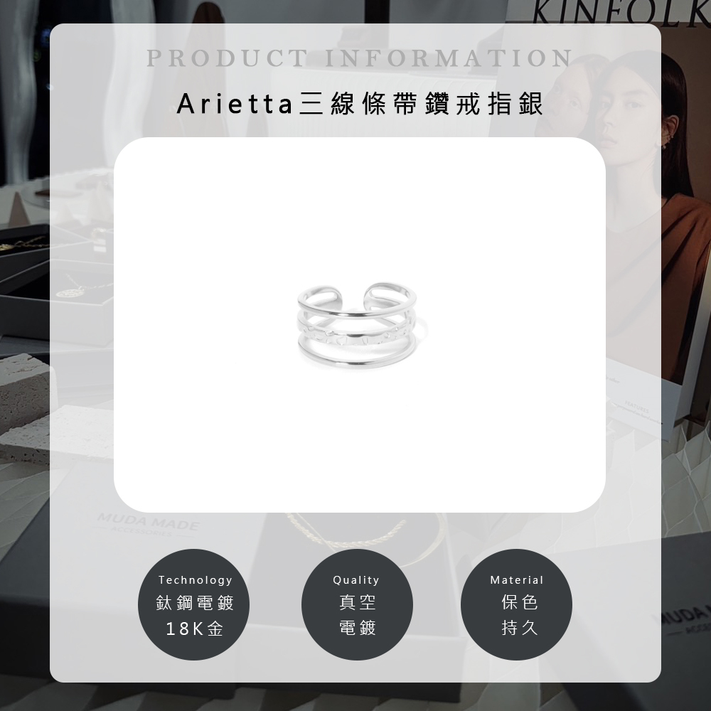 Roma |Arietta三線條帶鑽戒指銀|鈦鋼鍍18K