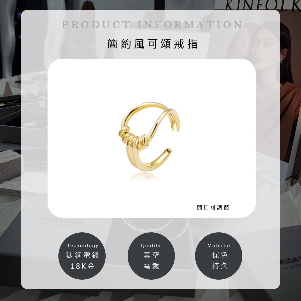 Simple chic|簡約風可頌戒指|可調|鍍18K|金