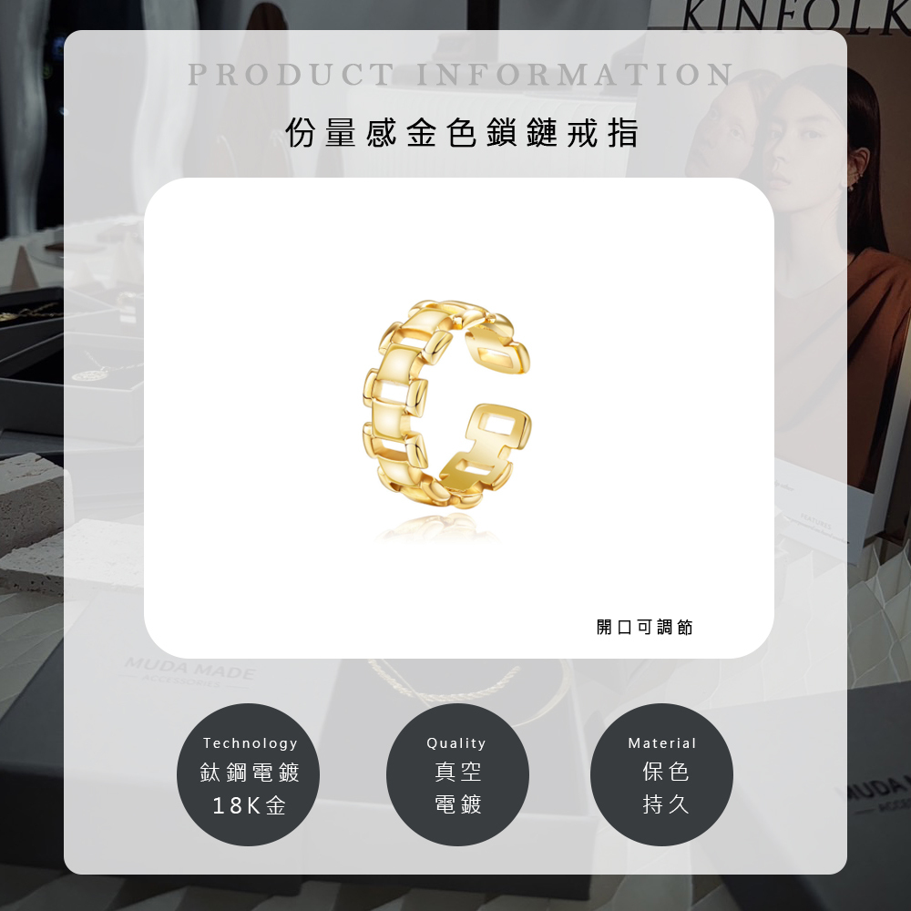 Simple chic|份量感金色鎖鏈戒指|可調|鍍18K