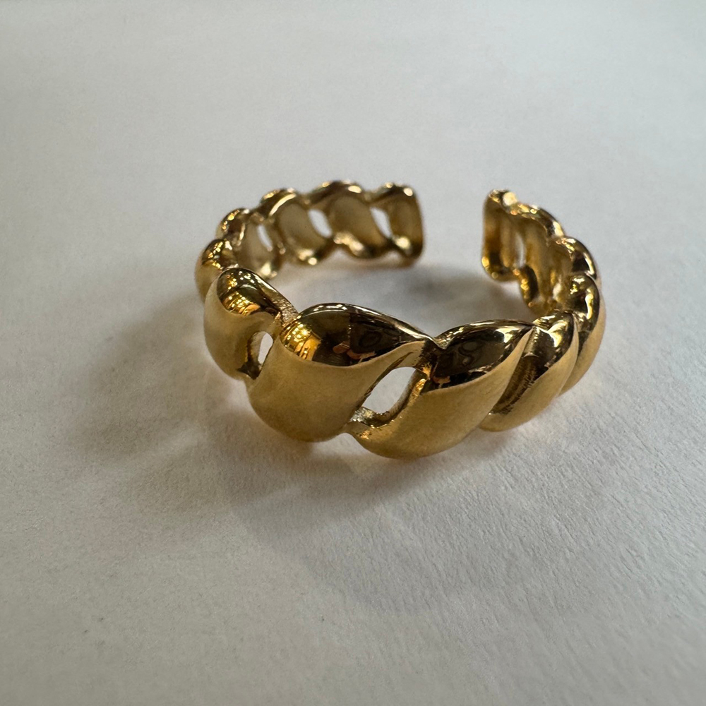 Simple chic|滑面可頌捲戒指|可調|鍍18K|金