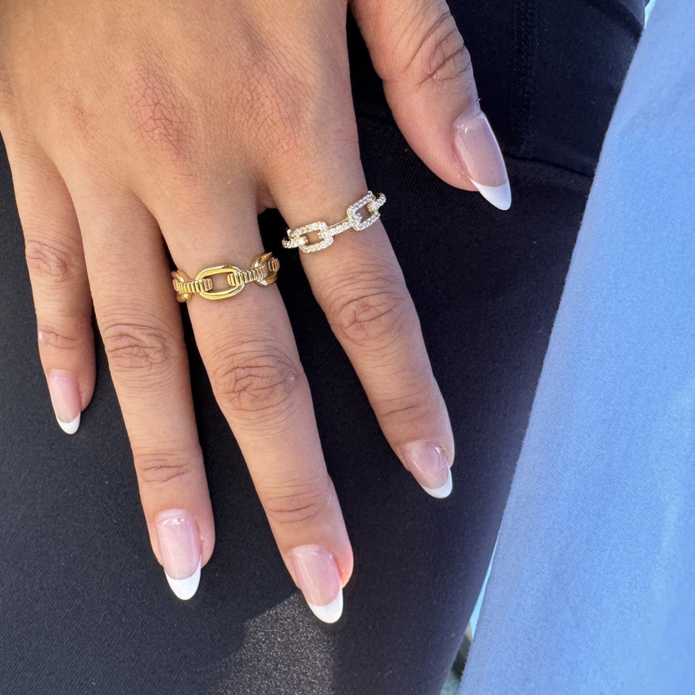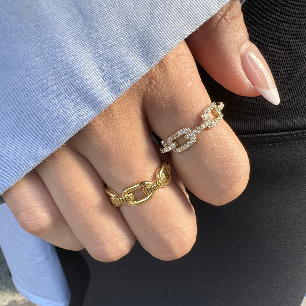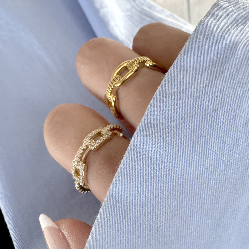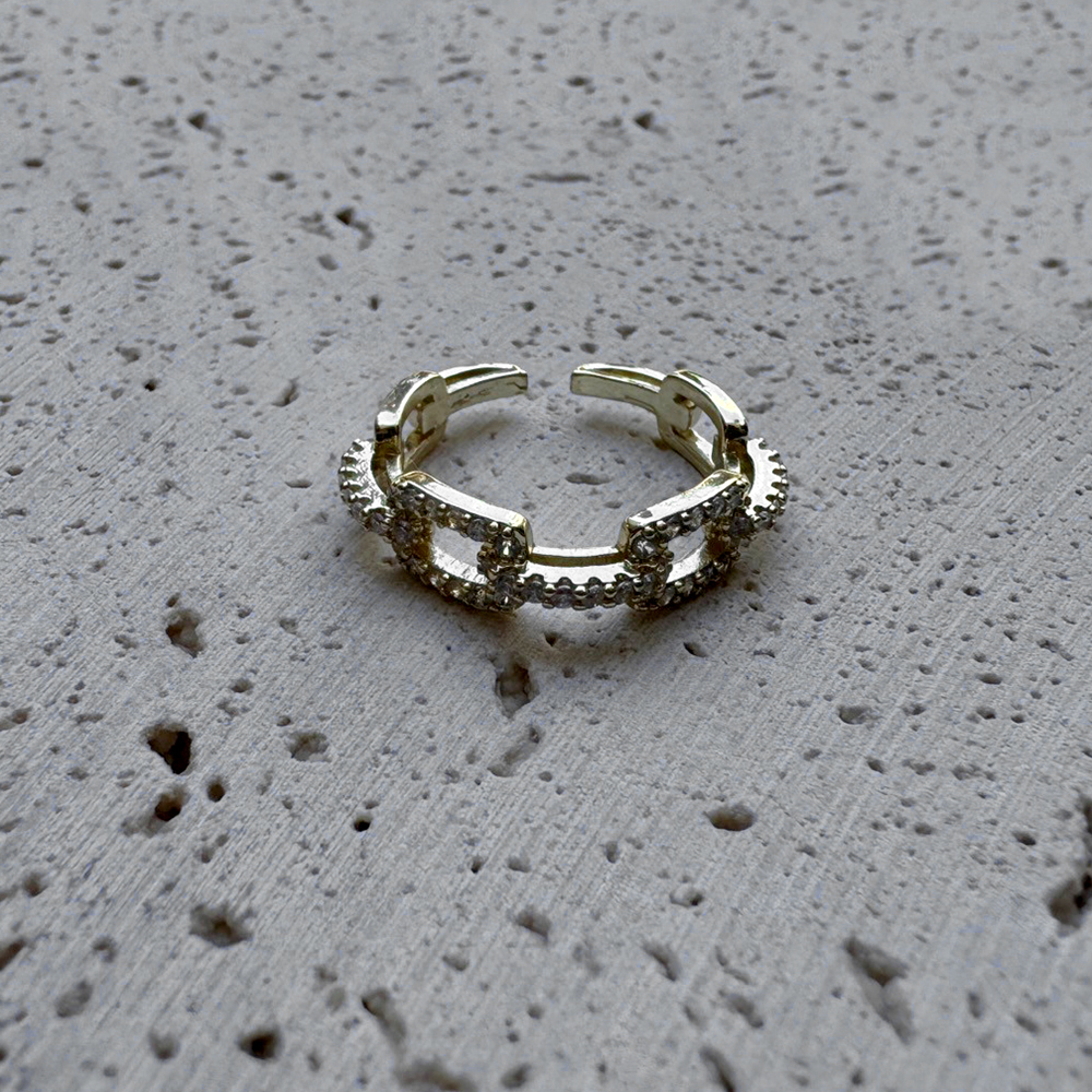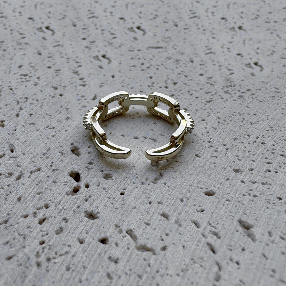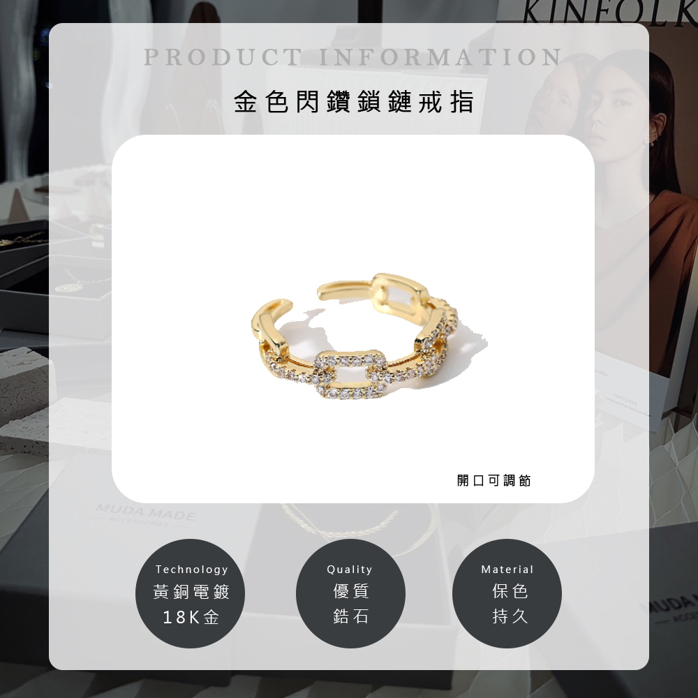 Simple chic|金色閃鑽鎖鏈戒指|可調|鍍18K