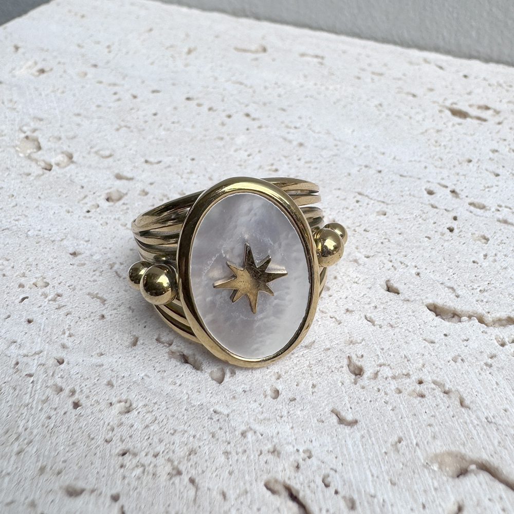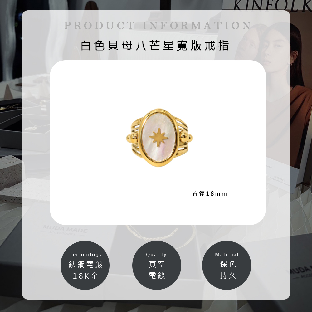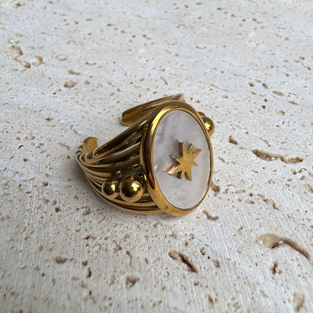 The Morocco souks|ward白貝母八芒星寬版戒指|鍍18k金