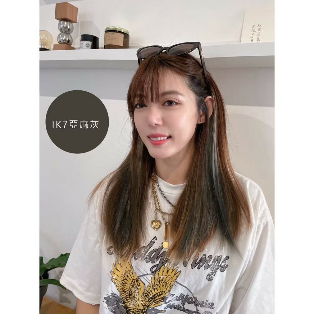 挑染是很主觀的配色,可以同時接上不同髮色,有撞色效果,也可以只接一片,綁馬尾也很明顯。